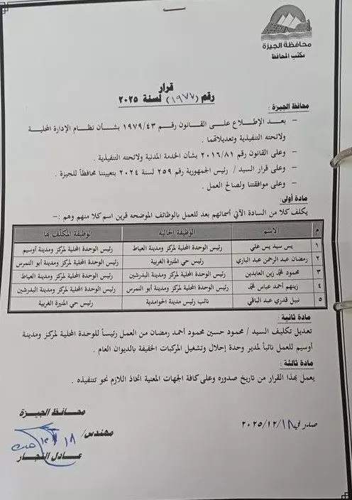 عودة رمضان عبد الرحمن عبد الباري، رئيسا لمركز ومدينة أبوالنمرس كما رغبت الوزيرة