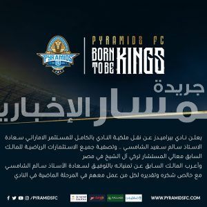 أعلن نادي بيراميدز نقل ملكيته إلى المستثمر الإماراتي سالم سعيد الشامسي، وتصفية استثمارات المالك السابق تركي آل الشيخ رئيس هيئة الترفيه بالسعودية في مصر.