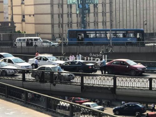 وحاول عدد من المواطنين إعادة فتح الطريق أمام السيارات، بعدما أصيب الكوبري بالزحام جراء تصادم سيارتين ببعض.