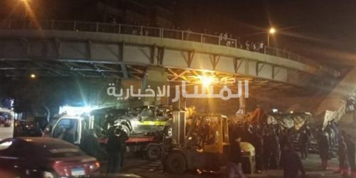 بالفيديو والصور .. ننشر تفاصيل سقوط سيارة شرطة من أعلى كوبري أرض اللواء