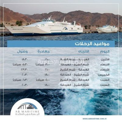 تخفيضات تصل لـ 15 % بمناسبة تشغل تشغيل الخط الملاحى شرم الشيخ الغردقة